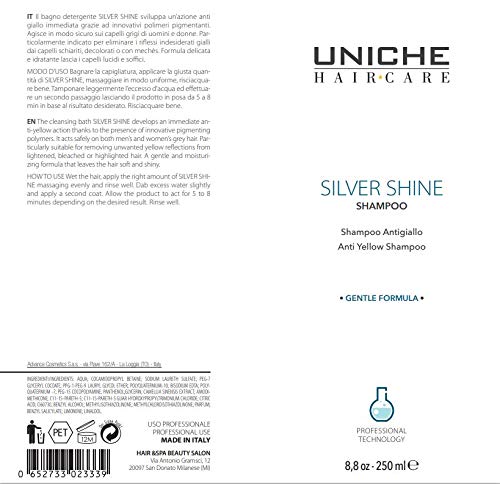 SILVER SHINE - Shampoo Antigiallo immediato, bagno detergente, agisce in modo sicuro sui capelli grigi di uomini e donne - UNICHE HAIR CARE