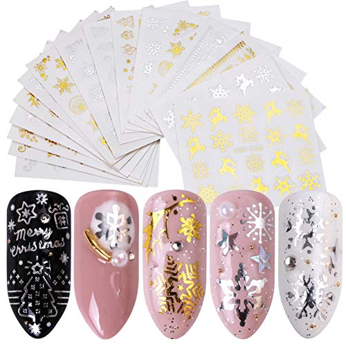 N-A 16pc Gold Silver Water Decal Nail Sticker Set Snowflake Design Nail Foil Transfer Manicure Decal