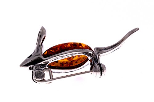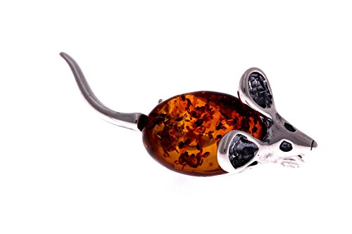 SilverAmber 4107 - Spilla a forma di topo in argento Sterling e ambra baltica