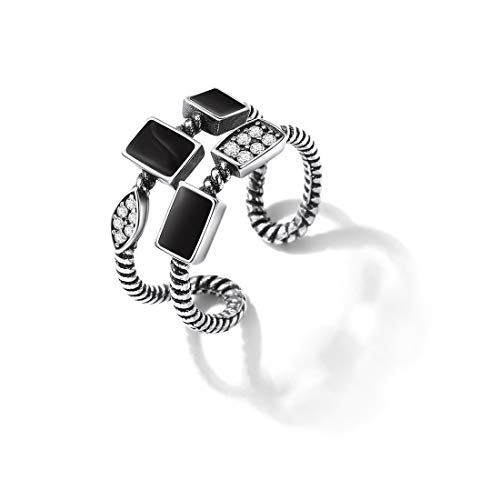 SILVERCUTE Donna Anello Aperto Regolabile Doppio Strato Semplice, Misura 12-27, Argento 925, Confezione Offerta, Regalo Natale Compleanno per Ragazza, Bicolore Argento Nero