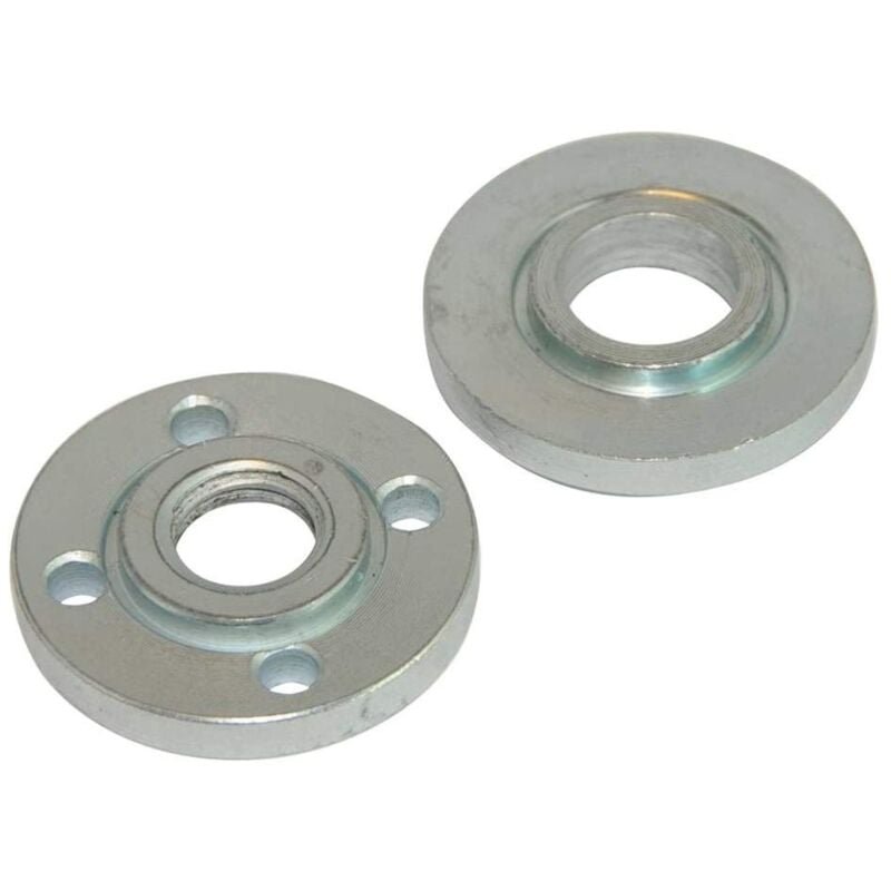 Descrizione Set di flange di ricambio per l'uso con la maggior parte delle smerigliatrici angolari filettate M14 e dischi di taglio e macinazione. Fori a perno con spaziatura di 30 mm.