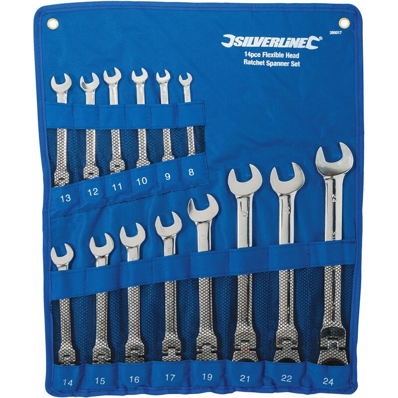 Silverline 399017 - Set chiavi a cricchetto, con giunto, 14 pezzi