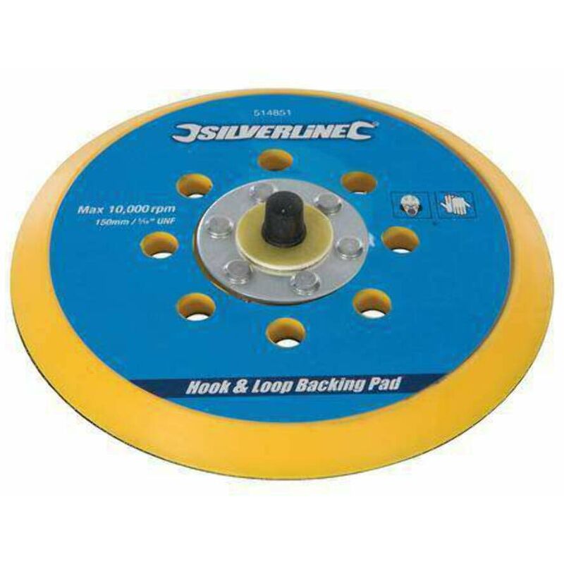 Platorello ferma con bordo semi-flessibili e 8 fori per aspirazione. Per l'uso con gancio e anello lucidatura spugne, cofani e dischi abrasivi. Compatibile con lucidatrici Sander dell'aria. 5/16 filetto maschio UNF. Max 10.000 giri.