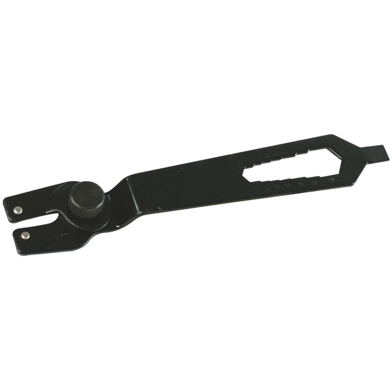 Chiave a completamente regolabile da 15-52mm. Maniglia gradino puo' essere utilizzato come una chiave per annullare noci da 10-19mm. Puo' anche essere utilizzato come chiave per sostituire i perni di smerigliatrici angolari, mole da banco, troncatrici e seghe circolari. 15 - 52mm