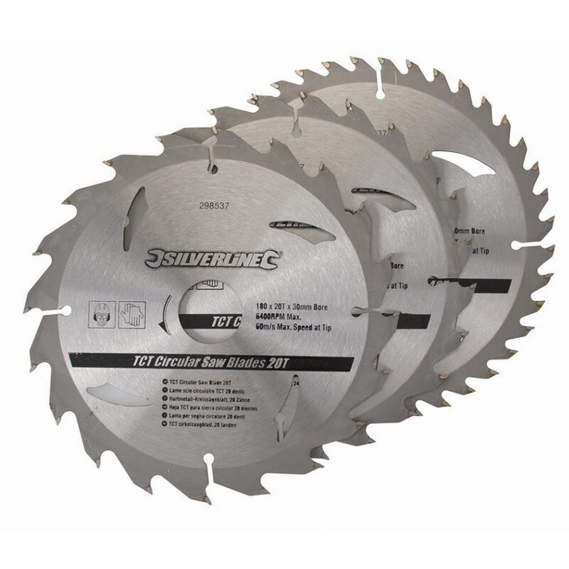 Dettagli: Confezione da 3 lame circolari adatte a legno duro e tenero, pannelli di particelle e altri materiali compositi. Temprato e rinforzato per garantire una lunga durata. 20, 24 e 40 denti. Attrezzatura: Fornito con anello di riduzione da 20 e 25 mm. Caratteristiche: Diametro della lama: 190 mm Velocità massima: 6.000 giri/min. Angolo della lama: 15°. Dimensione della lama: 190 mm Larghezza della lama: 190 mm Finitura: lucidata e rivestita di antiruggine Temprato: Sì Materiale - punta: Carburo di tungsteno Spessore della piastra: 1,4 mm Peso del prodotto: 0,261 kg Dimensione dei denti / segmento: 4,3 x 2,2 mm Materiale - costruzione secondaria: carburo di tungsteno Metodo di produzione: brasato Forma del dente/segmento: ATB
