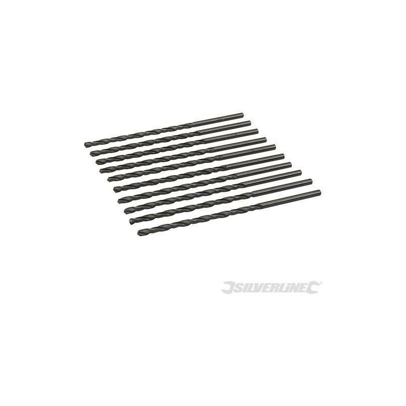 Set di Punte da trapano scopo 'jobber' per forare acciaio, alluminio, metalli non ferrosi, plastica e legno. Utilizzare agente e trapano raffreddamento a bassa velocità per ottenere i migliori risultati in metalli. HSS-R rullo acciaio forgiato 4341 ad alta velocità. Set di 10 pezzi Dimensioni da: 2.5 x 95 mm a 5,5 x 139 mm. Prodotto a DIN340 con 118 ° punto. Cod. 633490