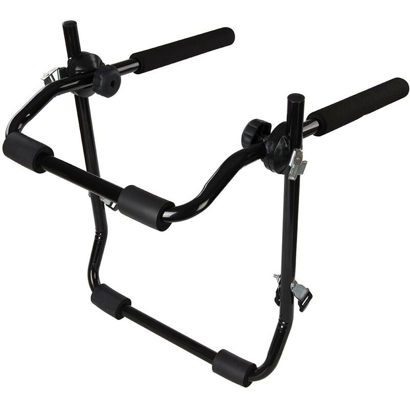 Rastrelliera per bici. Può supportare 3 bici standard e include nastri in nilon per fissarle, 6 nastri in nilon per montarle e 4 cuscinetti in spugna per un montaggio più sicuro. Si piega per una conservazione più pratica. Compatibile con macchine familiari, berlin, furgoncini, coupé, ecc. Solido acciaio tubolare Può trasportare fino a 3 bici standard con un peso totale di 45 kg (per le berline con bagagliaio: 2 bici e 30 kg) 4 cuscinetti in spugna per un montaggio più sicuro Si piega per una conservazione più pratica Compatibile con macchine familiari, berlin, furgoncini, coupé, ecc.