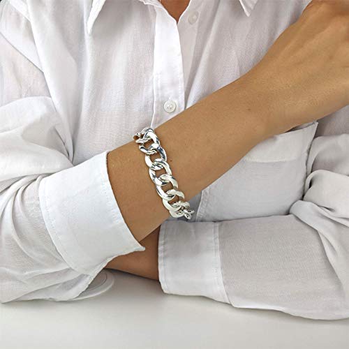 GIOIELLI DA CURARSI - Bracciale a catena per donna. Larghezza 17 mm. Lunghezza 21,5 cm. Argento sterling 925. Ipoallergenico e privo di nichel. Tipo di catena: catena a cordoncino. Questo articolo viene fornito in una confezione regalo. Panetto per lucidare per argento 925 incluso. Stile: bracciale a catena.