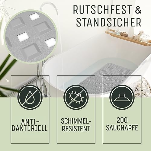 Il tappetino antiscivolo si adatta perfettamente al sifone e, grazie alle sue dimensioni di 88 x 40 cm, è particolarmente lungo: solo così la massima sicurezza in tutta la vasca da bagno grazie al tappetino antiscivolo