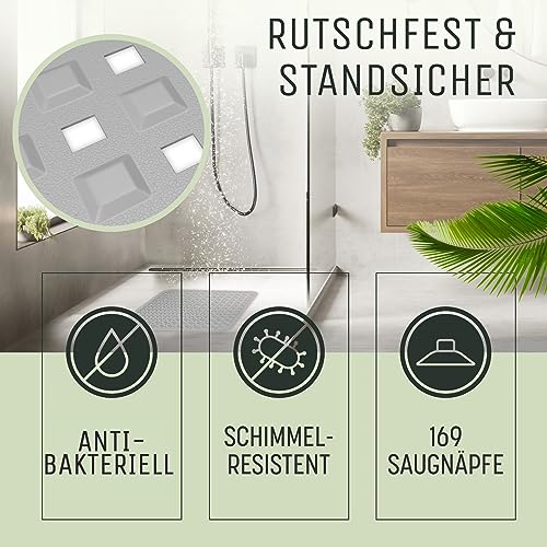 ✅ Antiscivolo e resistente - La superficie antiscivolo del nostro tappetino da doccia offre una presa assolutamente sicura e anche se viene utilizzato shampoo e sapone: non dovrete più preoccuparvi di una posizione sicura nella doccia.