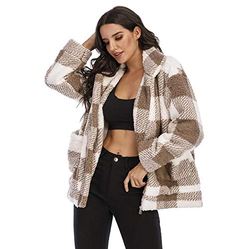 Silvertree - Cappotto da donna casual con risvolto in pile fuzzy Faux Shearling cerniera cappotti inverno caldo oversize Outwear giacche S-XXL Cammello L