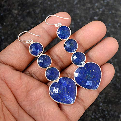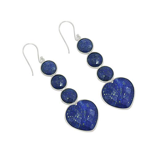 Silvesto India - Orecchini pendenti con pietra lapislazzuli a forma di cuore per ragazze e donne, regalo per lei