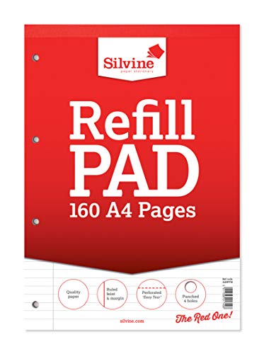 Silvine - Blocco di fogli di ricambio, 160 fogli, formato A4, con rilegatura sul lato superiore e con 4 fori Righe con margini Single