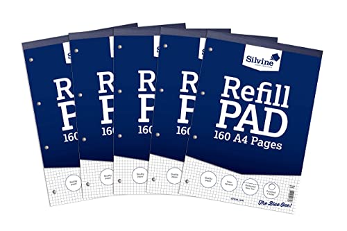 Silvine - Confezione da 5 fogli di ricambio per fogli A4, rilegati a testa e perforati, 4 fori, 5 mm, a righe