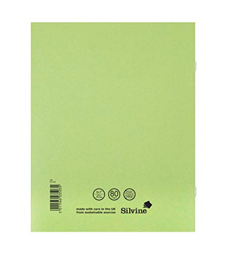 Silvine - Quaderno a righe con margini per correzione degli esercizi, 80 pagine, 229 x 178 mm Green, 10 Pezzi