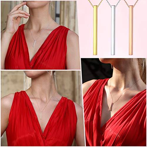 Silvora Ciondolo da Donna in Argento S925 Cuboid Bar Strisce Personalizzate Ciondolo in Acciaio Inossidabile in Argento/Oro/Oro Rosa con Incisione Desiderata Ciondolo Quadrato per Donne/Ragazze