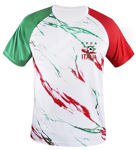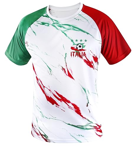 Simapak Uomo Italia Soccer Sostenitore dei Tifosi di Calcio Tee Maglietta in Maglia da Gara con Maniche Raglan - Multicolore (Dimensione: 2XL)