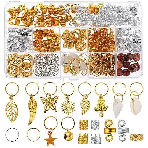 Simarro 240 gioielli per capelli per trecce, 20 anelli in metallo stile per trecce, accessori per dreadlock, ciondoli per capelli, accessori per trecce, gioielli per trecce, fermagli per capelli,