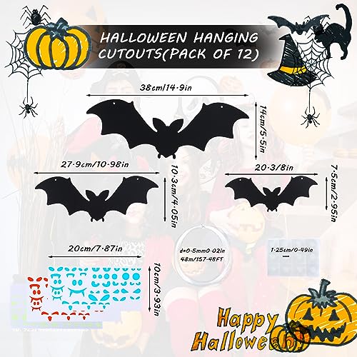 Simarro Pipistrello da appendere decorazione di Halloween, 12 pezzi per esterni interni Halloween pipistrelli da appendere decorazione Halloween cortile decorazioni per albero di Halloween ornamenti