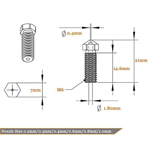 Specifica: questo ugello accetta il diametro di ingresso è di 1,75 mm e il diametro di uscita è di 0,4 mm.