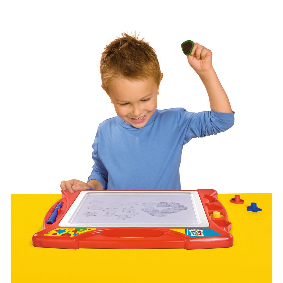 I piccoli artisti possono mostrare quello che sanno fare sul tavolo da disegno magico di Art & Fun. Come per magia, le immagini creative possono essere disegnate sul tavolo da disegno. E se le cose non vanno come previsto, possono essere facilmente rimossi con un panno. Con i 4 timbri magnetici, ogni opera d'arte può essere abbellita individualmente. Ci sono dei supporti per la penna magnetica e i timbri a sinistra e a destra della tavola di pittura, così nulla può andare perso e sono facili da trasportare. Adatto ai bambini a partire da 3 anni. Dettagli del prodotto: Dimensioni (lunghezza x larghezza): 40 x 29 cm 4 timbri Penna magnetica che permette di disegnare disegni sulla lavagna Età: da 3 anni Attenzione. Non adatto ai bambini sotto i 3 anni. Pericolo di soffocamento a causa delle piccole parti.