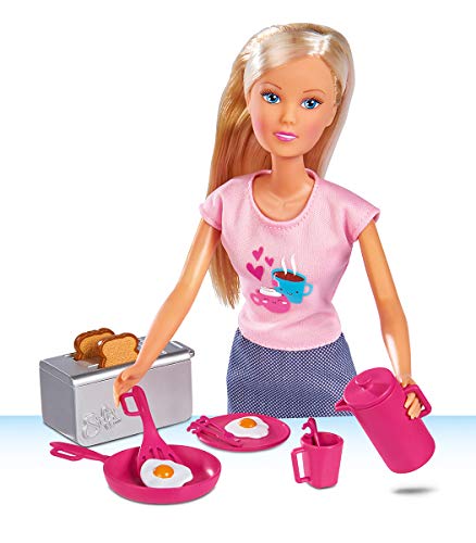 Steffi con 14 pezzi. Accessorio per la colazione, con tostapane con funzione. La bambola è alta 29 cm