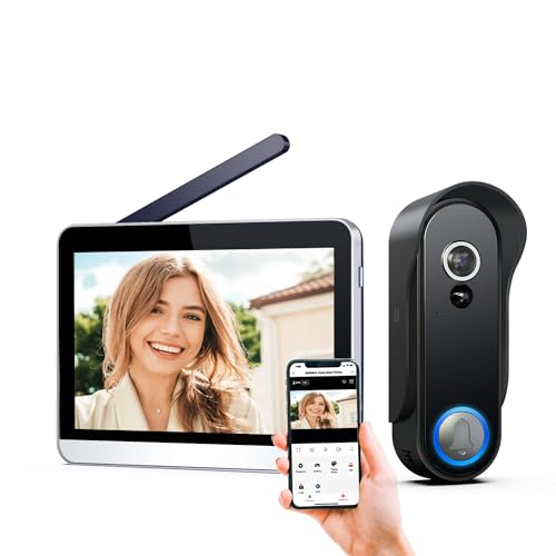 SIMBAILAI Wifi 7 Pollici Touch Screen 1080P Kit Videocitofono Senza Fili Campanello vivavoce Con Batteria, Telecamera a 160 Gradi,Visione Notturna,Rilevamento del Movimento PIR,Wireless,IP65