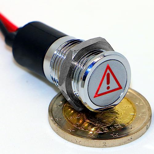 SPIA LED 14mm CON SIMBOLO ESP PERICOLO metallo 12V warning indicator light ROSSO