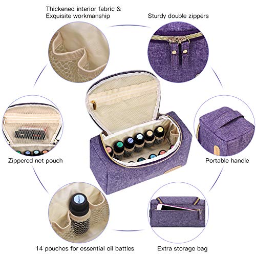 SIMBOOM Custodia di Oli Essenziali Borsa da Viaggio per 14 Bottiglie Olio Essenziale 5ml 10ml 15ml 20ml o 30ml (Viola)