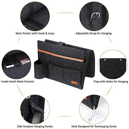 【Design aggiornato】Borsa da letto in feltro con la cinghia con fibbia regolabile e una tasca portabottiglia e 2 fori laterali e 2 fibbie per auricolari sul lato, Rendi il Organizer in feltro per letto più applicabile.