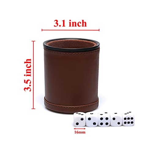 Dice Cup similpelle con interno in velluto, silenziosa in agitazione per bugiardi dadi Farkle Yahtzee giochi da tavolo (marrone scuro)