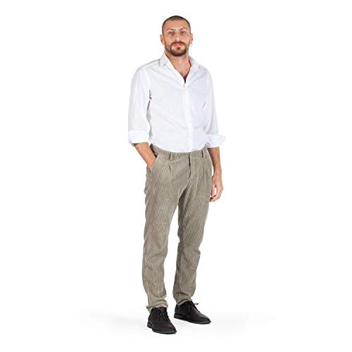 YAN SIMMON Pantalone Uomo in Velluto a Coste, Pinces Eleganti, Alta Sartoria - Made in Italy (50, Beige)