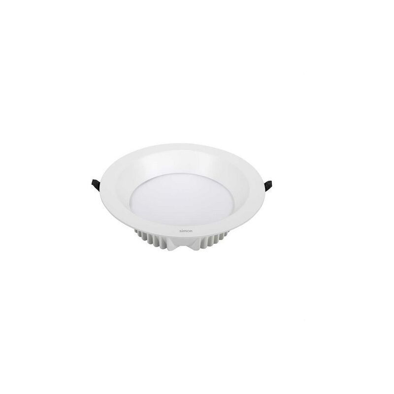 Downlight 725.25 NW Comfort High Flux circolare di 230 mm di diametro, con tecnologia LED e dotato di diffusore realizzato in PMMA, effetto lamina di luce e distribuzione fotometrica generale di 120°. Inoltre, l'ottica rientrata è stata progettata per un maggiore comfort visivo e una distribuzione luminosa uniforme. Corpo realizzato in alluminio per un'eccellente gestione termica e verniciato in bianco. Dispositivo elettronico esterno, con controllo ON-OFF. Dissipatore realizzato in alluminio ad alta conducibilità, con alette per un'ottimale raffreddamento del LED. Flusso luminoso 3400 lm per NW e consumo totale della lampada di 37 W (efficienza del sistema reale 100 lm/W). CRI>80. Installabile in superficie tramite accessorio. Tensione di alimentazione 230 V 50 Hz. Manutenzione luminosa L70 >30.000 h a 25°C. Dimensioni della lampada: 230 mm di diametro x 65 mm di profondità. IP 44. Altezza di incasso: 115 mm.