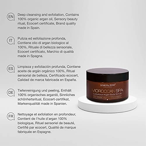 Simon&Tom - Moroccan Spa Body Scrub - Esfoliante Delicato per il Corpo - Con olio di Argan Biologico-Particelle di Mandorle e Gusci di Argan - Senza parabeni e solfati - Vegan/200ml Made in Spain