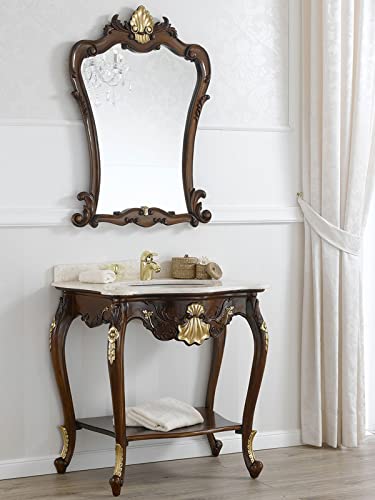 Simone Guarracino Luxury Design Consolle e specchio Eleonor stile Barocco Inglese arredo bagno cm 85 noce e foglia oro marmo crema