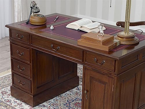 Simone Guarracino Luxury Design Scrivania Regency Stile Inglese scrittoio ministeriale presidenziale bifacciale cm 130 Noce Ecopelle Bordeaux