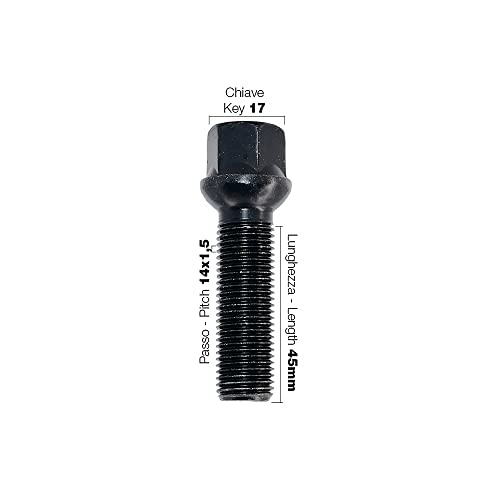 Kit 10 bulloni ruote chiave 17 M14x1.5 lunghezza 45 mm testa sferica zincato nero