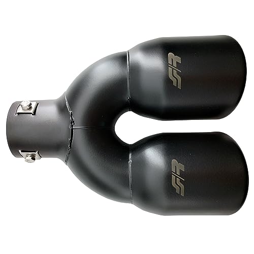 Simoni Racing TRX/59N Terminale di Scarico Universale, Uscita Doppia Inclinata Rotonda 185 x 90 mm, in Acciaio Inox Nero