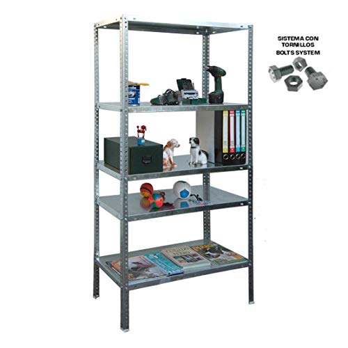 SimonRack Scaffalatura metallica 5 ripiani regolabili, 100 kg di punto flessione, 2000 x 1000 x 300 mm, con viti, scaffalatura, zincata - Comfort