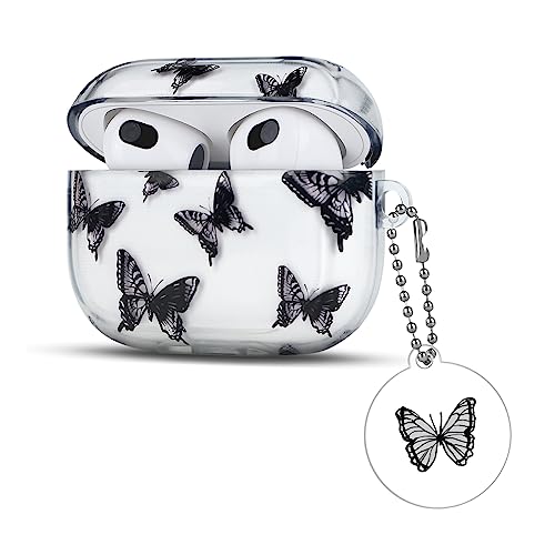 Simpatica Custodia Protettiva per Airpods 3 Generazione con Portachiavi Bella, Adorabile Cover Protettiva con Design di Farfalla per Airpods 3a Generazione, Anti Scivolo AntiGraffio Antiurto