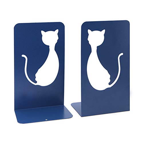 Un paio di simpatici cartoni animati gatto antiscivolo in metallo fermalibri organizzatori per la casa ufficio studio decorazione (blu)