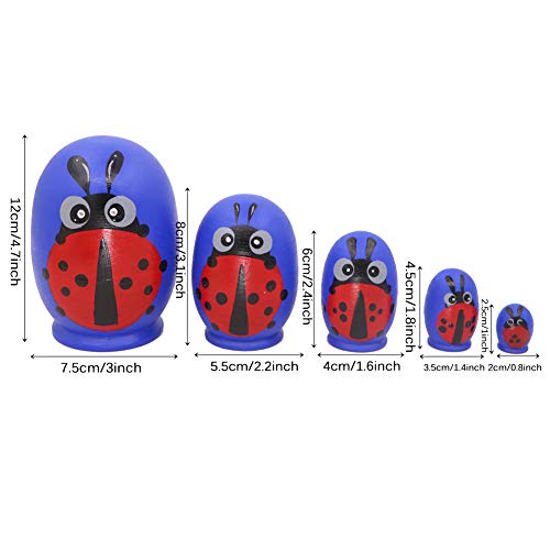 Set di 5 simpatici uova a forma di coccinella tema blu dipinto a mano animale impilabile giocattolo russo a mano nidificazione bambola per bambini giocattolo compleanno