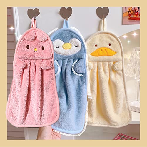 【Pacchetto incluso】 Un prodotto include 3 pezzi di asciugamani in pile corallo, un simpatico asciugamano rosa con motivo coniglio, un asciugamano giallo con motivo anatroccolo, un asciugamano blu con motivo pinguino. Gli asciugamani sono progettati per essere facili da appendere e poco ingombranti.