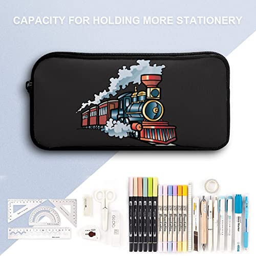 Simpatico astuccio per cancelleria, piccolo e grande, con cerniera, design artistico, disegno vintage, immagine treno in movimento, pittura fumo, strumento da collezione, per ufficio, uomo e donna,