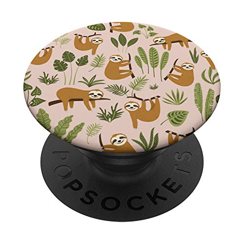 Simpatico modello tropicale di bradipo sorridente PopSockets PopGrip: Impugnatura per Telefoni Cellulari e Tablet Intercambiabile