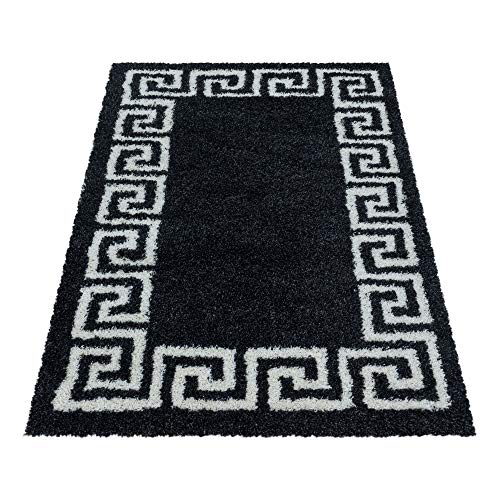 SIMPEX Tappeto pelo lungo, Design meandro, Tappeto Nero, 80 x 150 cm, Tappeti in stile moderno, Tappeto soggiorno