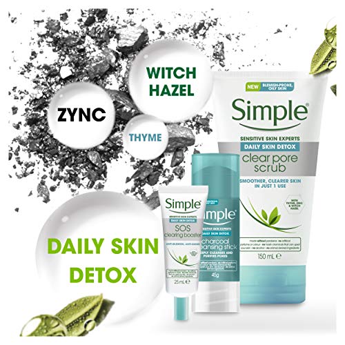 Simple Daily Detox 3 Step Regime per pelle grassa: Carbone Cleansing Stick, Clear Pore Scrub e Sos Booster GEL1
