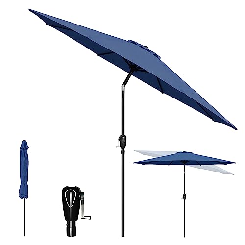 Simple Deluxe Ombrello da giardino da 2,7 m con inclinazione a bottone, manovella e 8 robuste nervature per giardino, terrazza, prato, cortile e piscina, blu