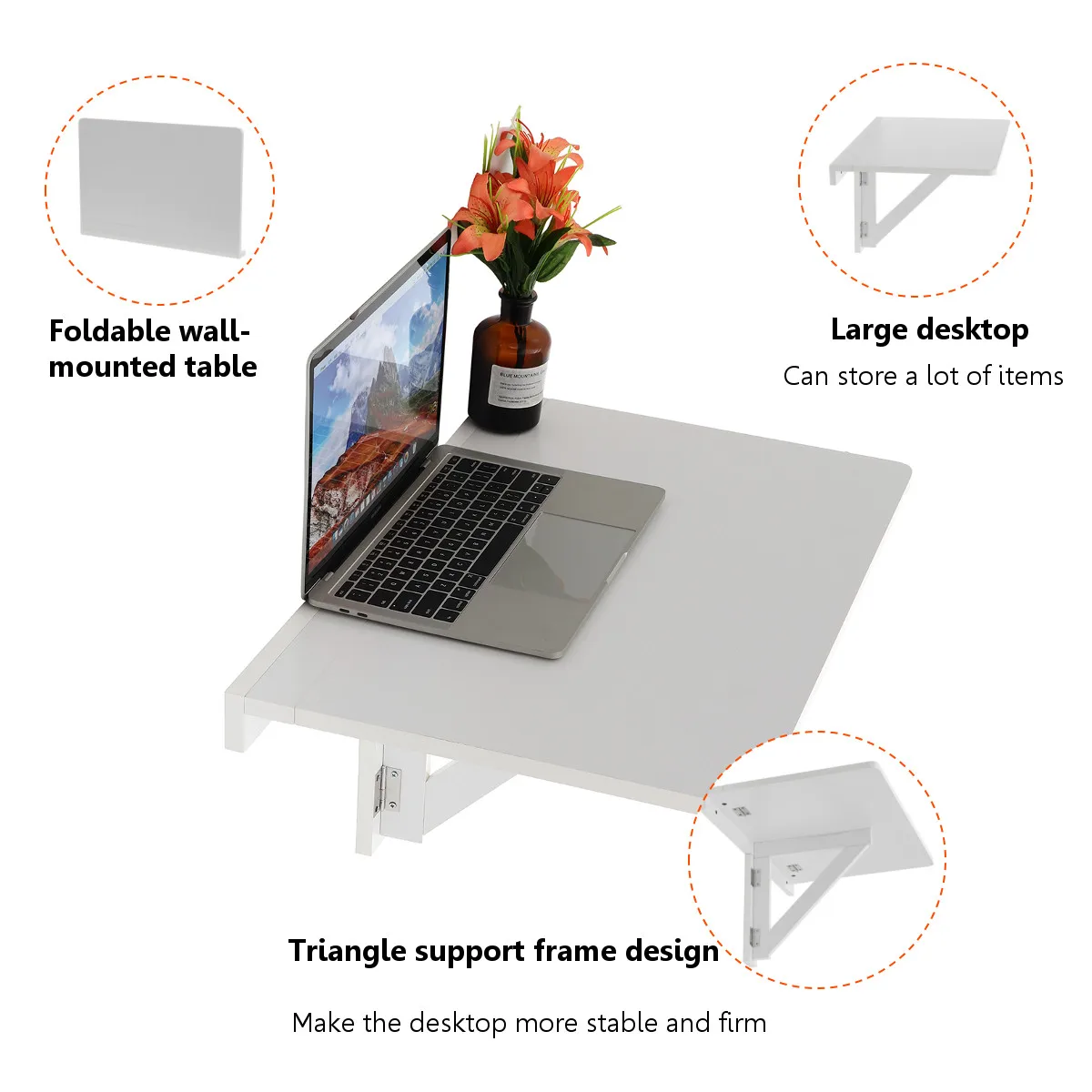 Home Simple Folding Angle Computer Desk Laptop Table Simple Bracket Heavy Support Wall Mounted Hanging Stable Triangle Design