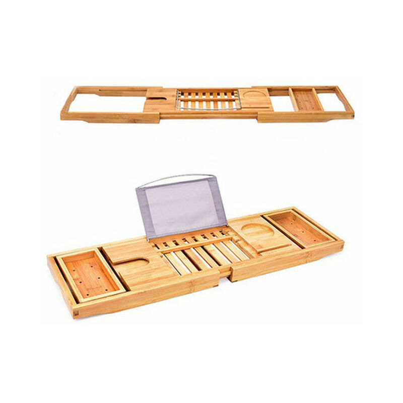 Simple Household Bamboo Bathroom Bathtub Storage Rack Retractable Mobile Phone Tablet Bracket Bathroom Rack Tray,bamboo,105.5x22cm